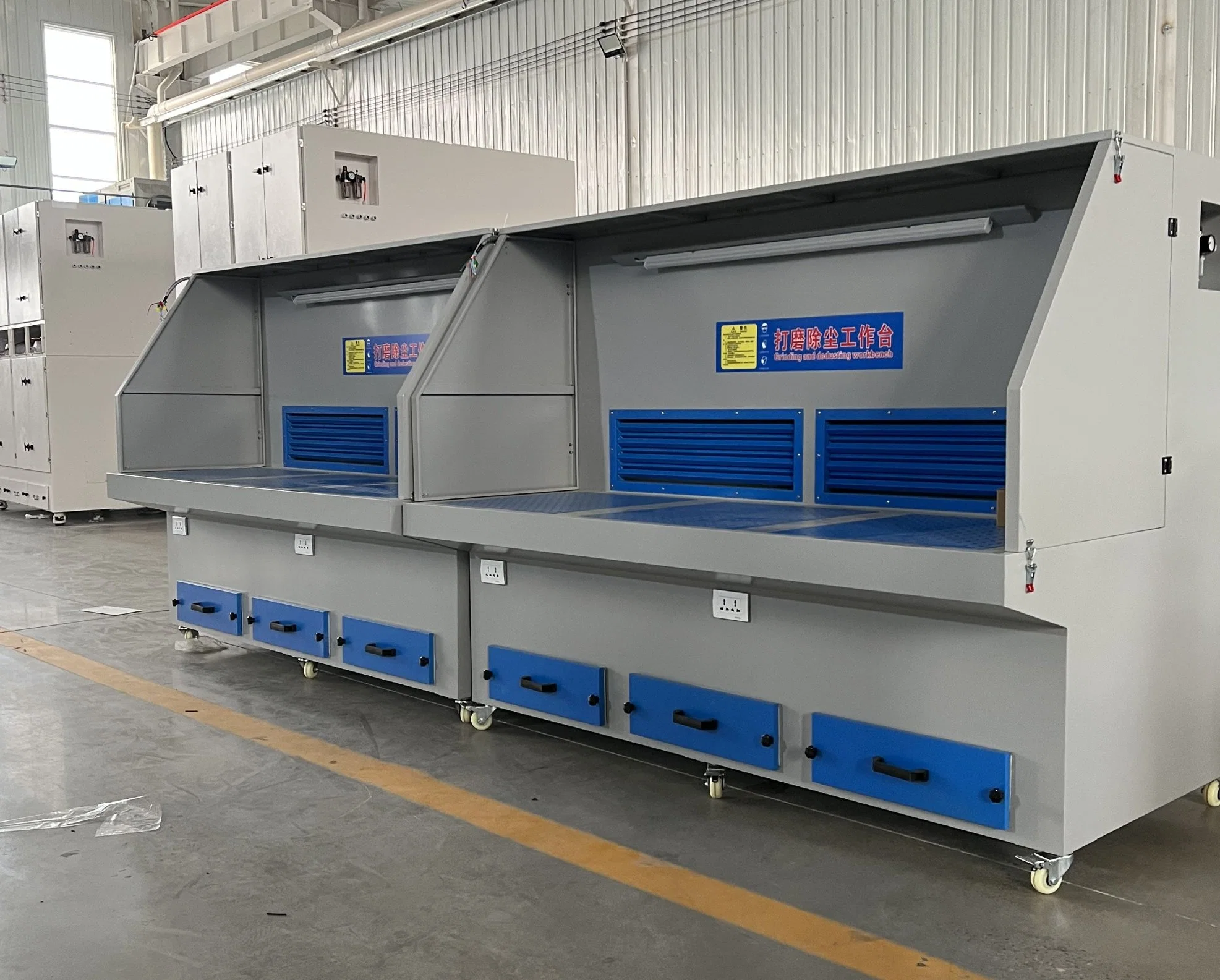 -Ağac tozunun filtrasiya qabiliyyəti:Ağac emalı zamanı yaranan toz əsasən ağac lifi tozudur ki, tərkibində ağac qatranı kimi zərərli maddələr ola bilər. Taşlama və tozdan təmizləmə masası bu ağac tozlarını effektiv şəkildə süzə bilməli, incə ağac lifi hissəcikləri üçün yüksək tutma dərəcəsinə malik olmalı və atılan havanın ətraf mühitin mühafizəsi standartlarına cavab verməsini təmin etmək, işçiləri toz təhlükələrindən qorumaq və yüksək filtrasiya dəqiqliyinə malik olmalıdır. tənəffüs xəstəlikləri və digər sağlamlıq problemləri riskini azaldır.